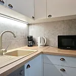 La Dolce Vita Apartment Trogir dairesi, Trogir Tarihi Alanı'a 19 dakikalık yürüme mesafesinde yer almakta olup yüzme havuzu içeren terasa sahiptir. Bu konaklama tesisinde 1 yatak odası, 1 banyo odası ve donanımlı mini mutfak vardır.